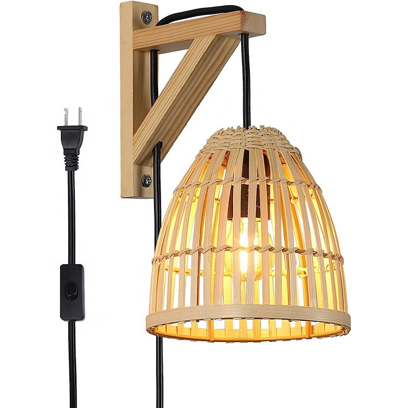 Retro Woven for Kitchen Dining & Living Room Free Charging Wiring Bamboo Wall Lamp BBR240