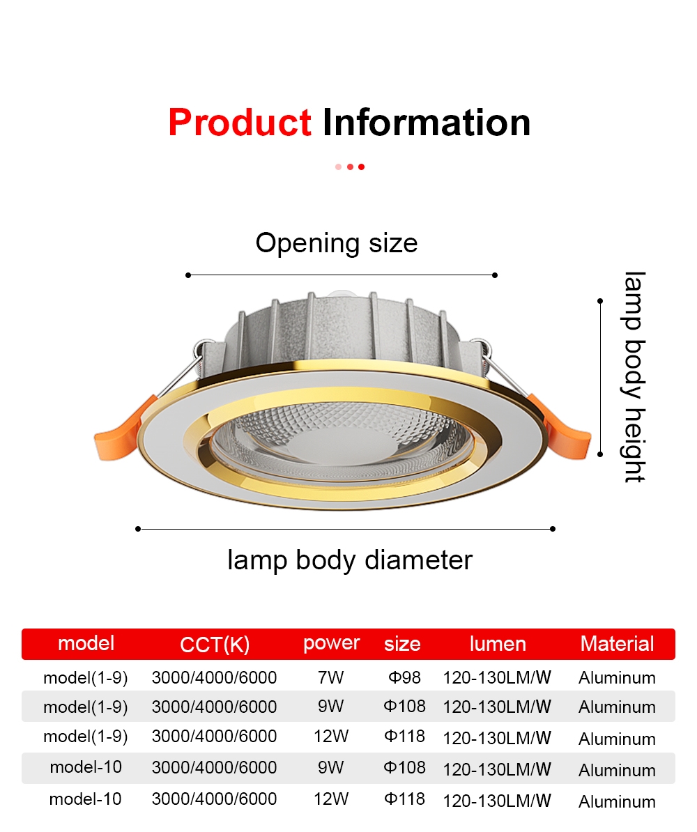 Modern Ultra-Slim 5W/7W LED Ceiling Flat Panel Light Golden Rim Recessed Downlight Energy Saving Aluminum Lamp Body Spotlights