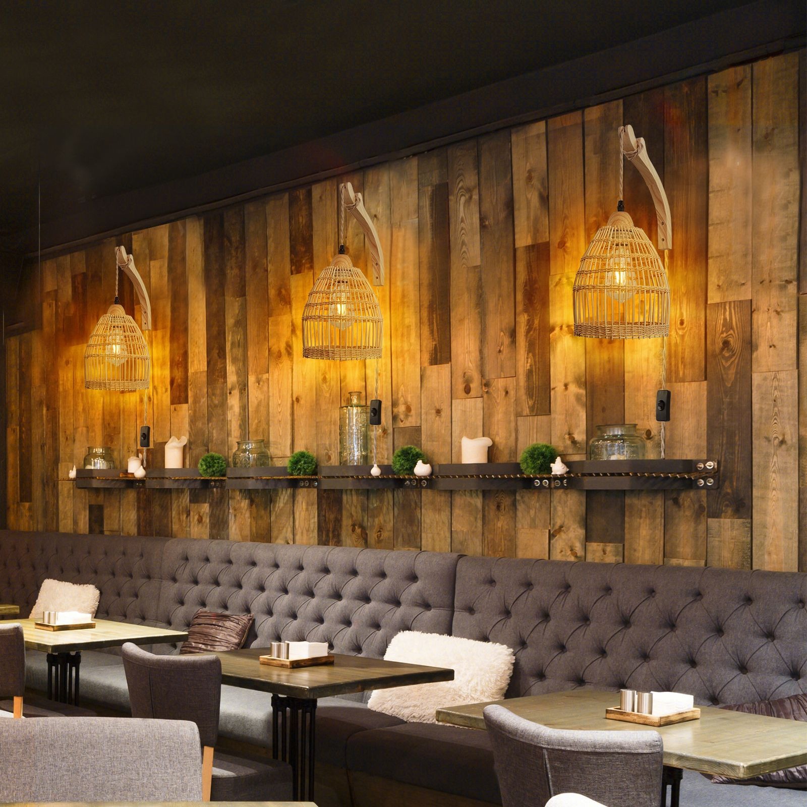 Customized Bamboo Weaving Wall Hanging Lamp Rattan Scones Chandelier Pendant Light for Restaurant Hotel Corridor