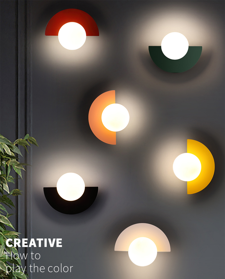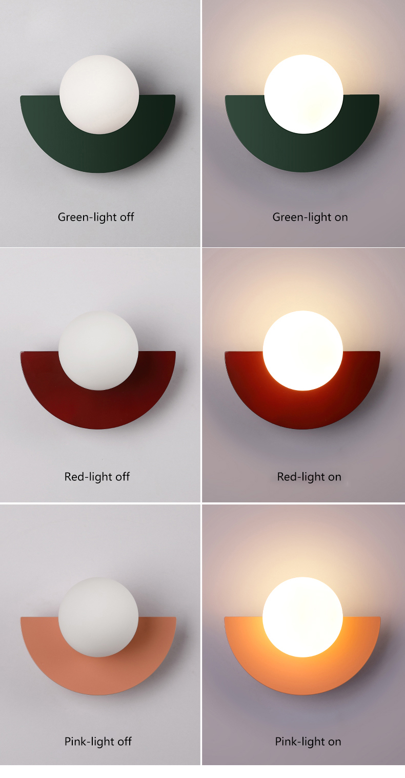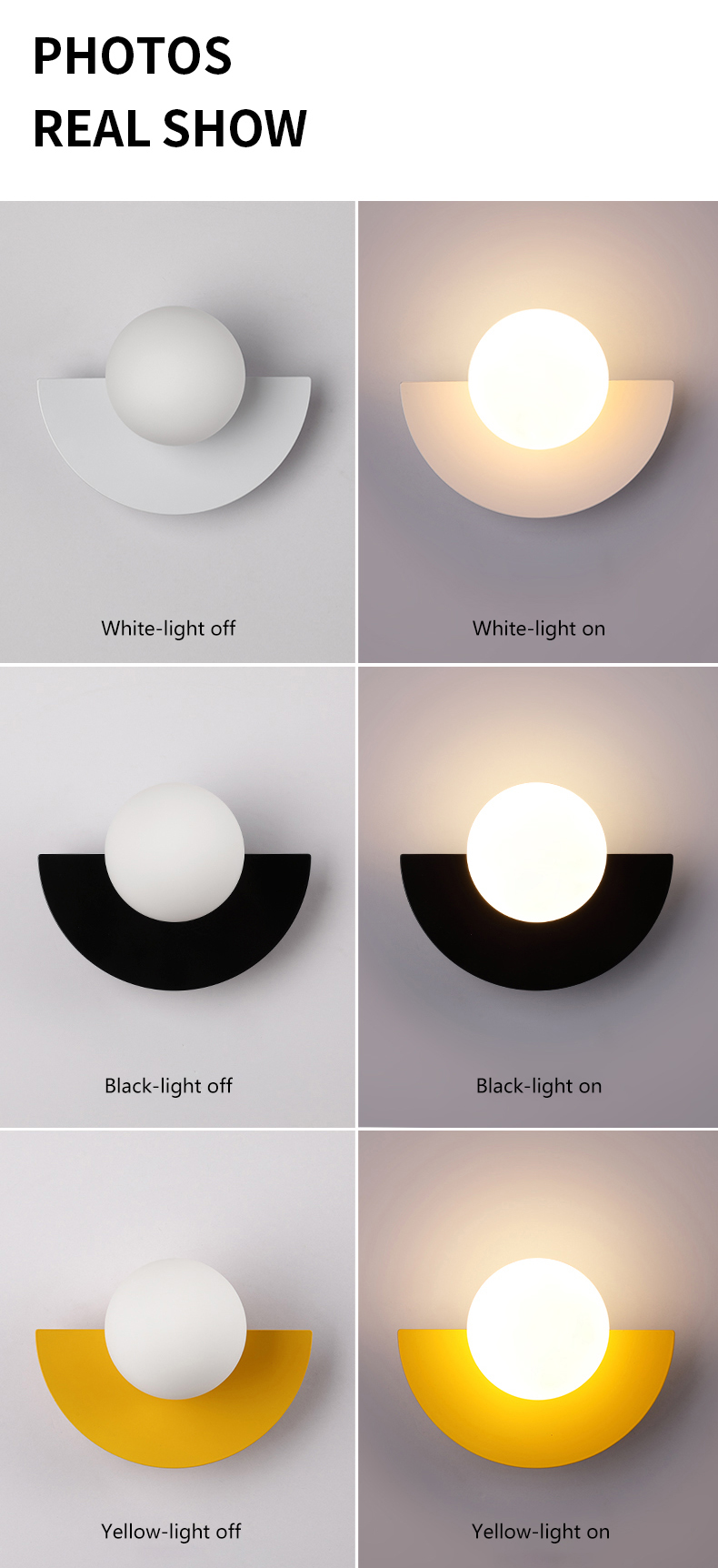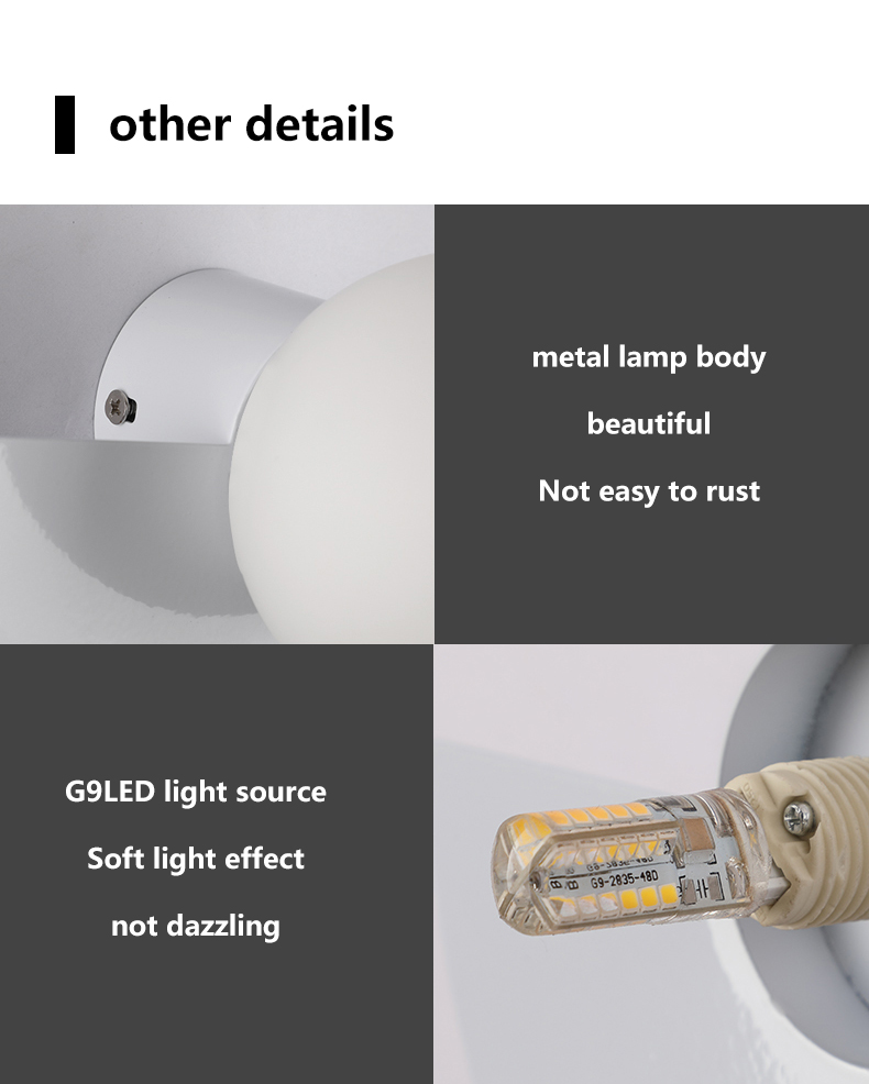 Simple Indoor Bedroom Bedside Home Decoration Light Milk White Glass Ball Color LED Wrought Iron Nordic Wall Lamp Light G9 5W