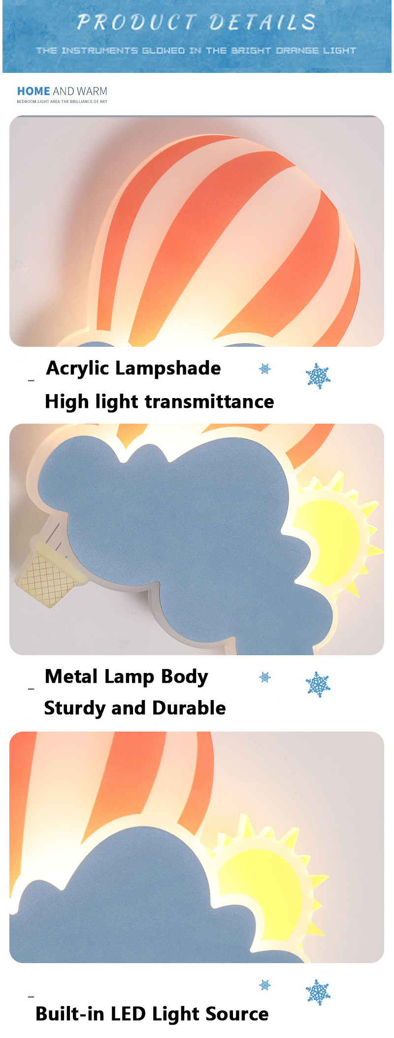 Modern Simple Children Room Wall Lamp Rainbow Cloud LED Home Decoration Sconce Wall Light Acrylic Lampshade Hot Air Balloon Lamp