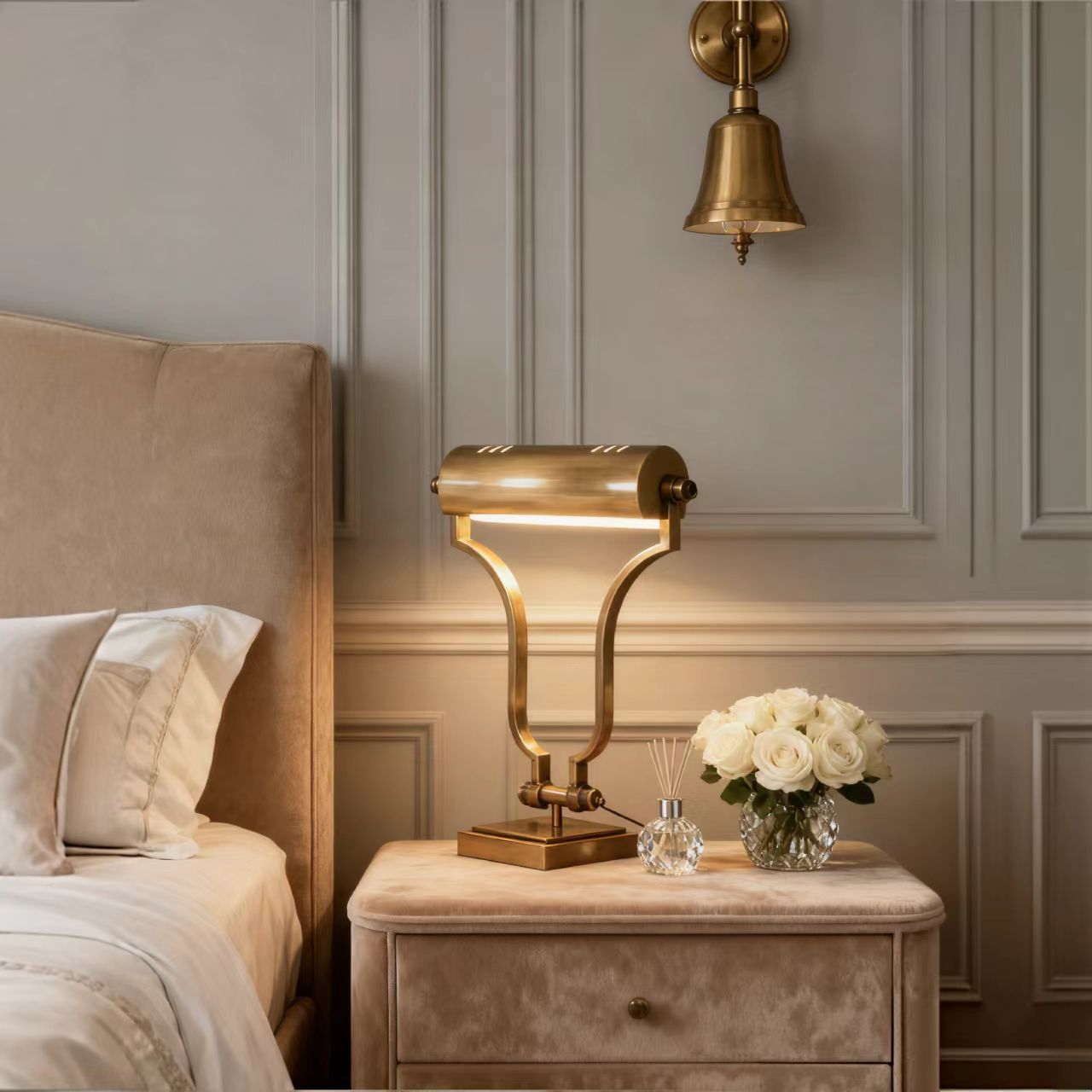 Traditional Vintage Brass 14" LED Piano Banker Gold Brass Table Lamp Desk Lamp Adjustable Direction Reading Light for Piano