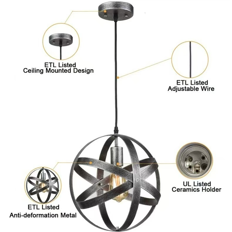 American Chandelier Living Room Dining Room Retro Chandelier Round Industrial Style Bedside Chandelier