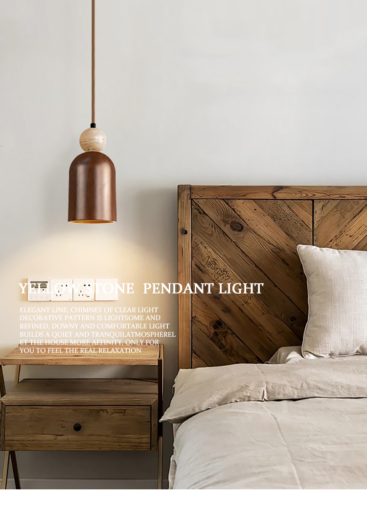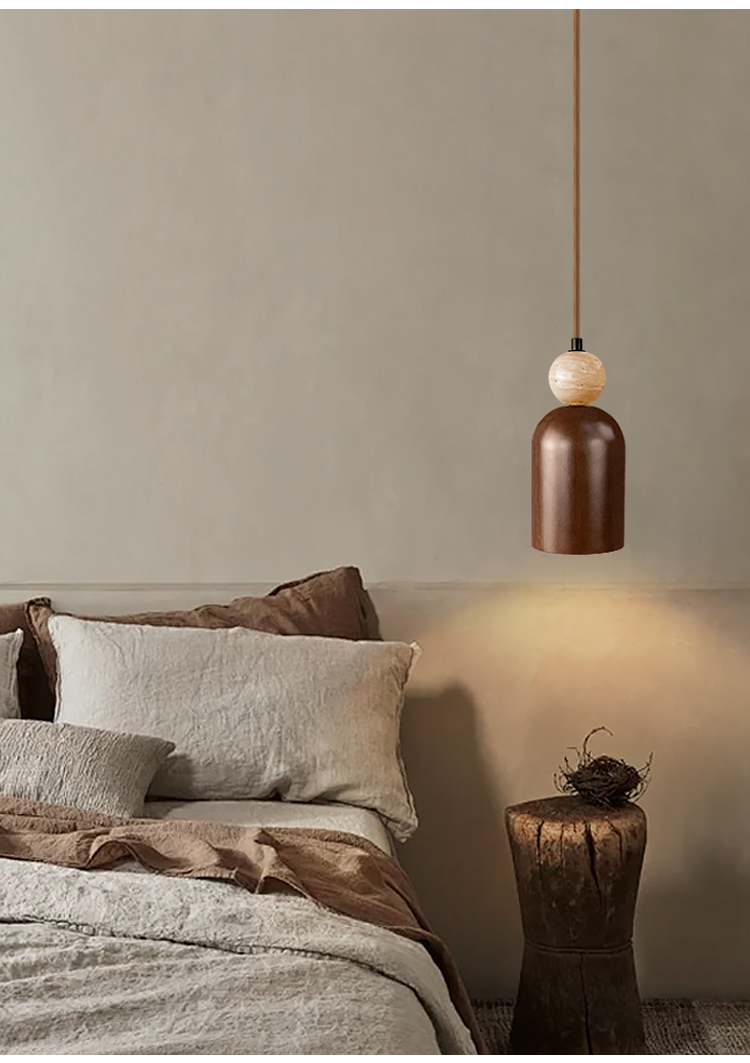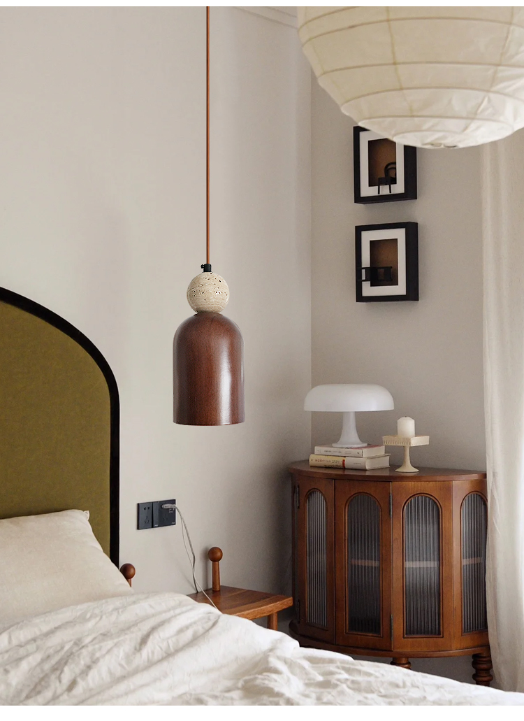Japanese Wabi Sabi Cavity-Stone Bedroom Chandelier Wood Pendant Light JPS290
