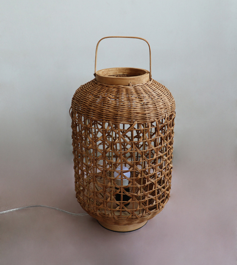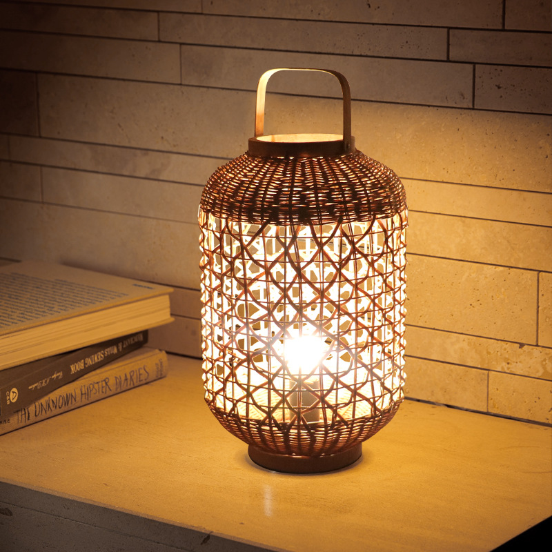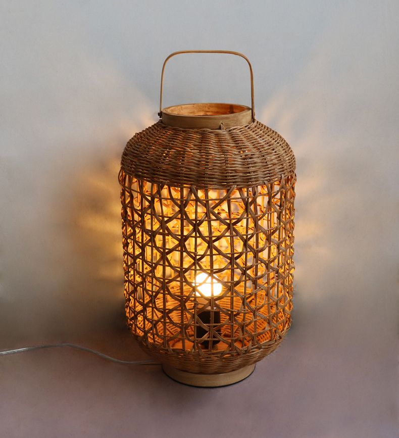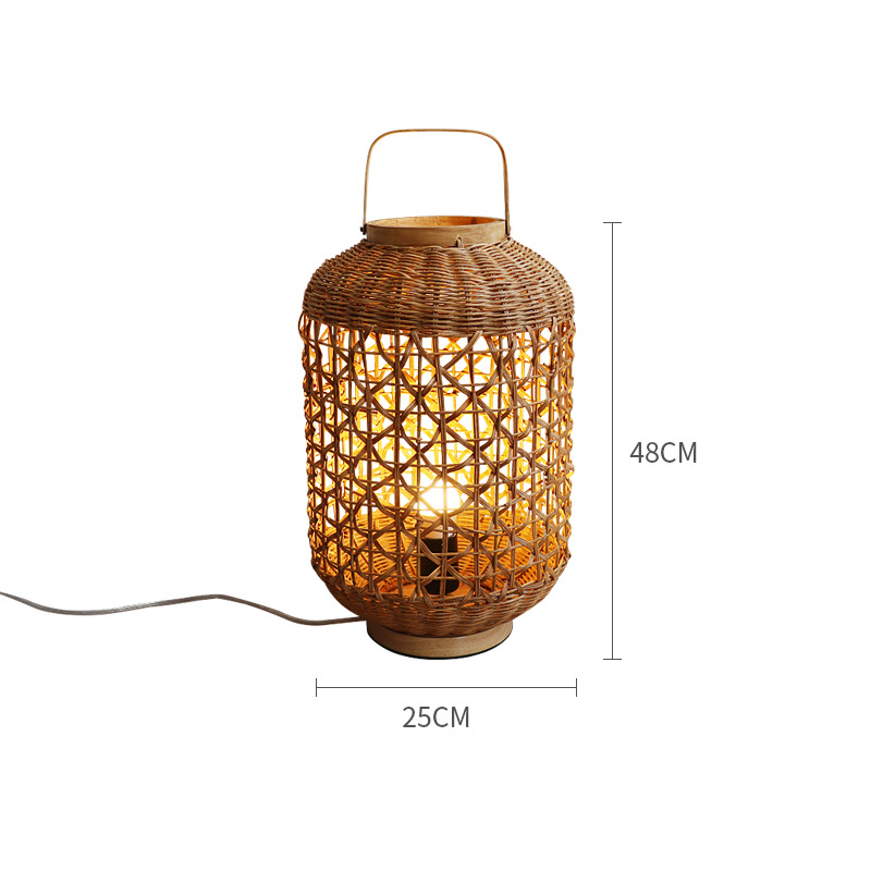 Chinese Retro Rattan Cylinder Lantern Table Lamp CNS320