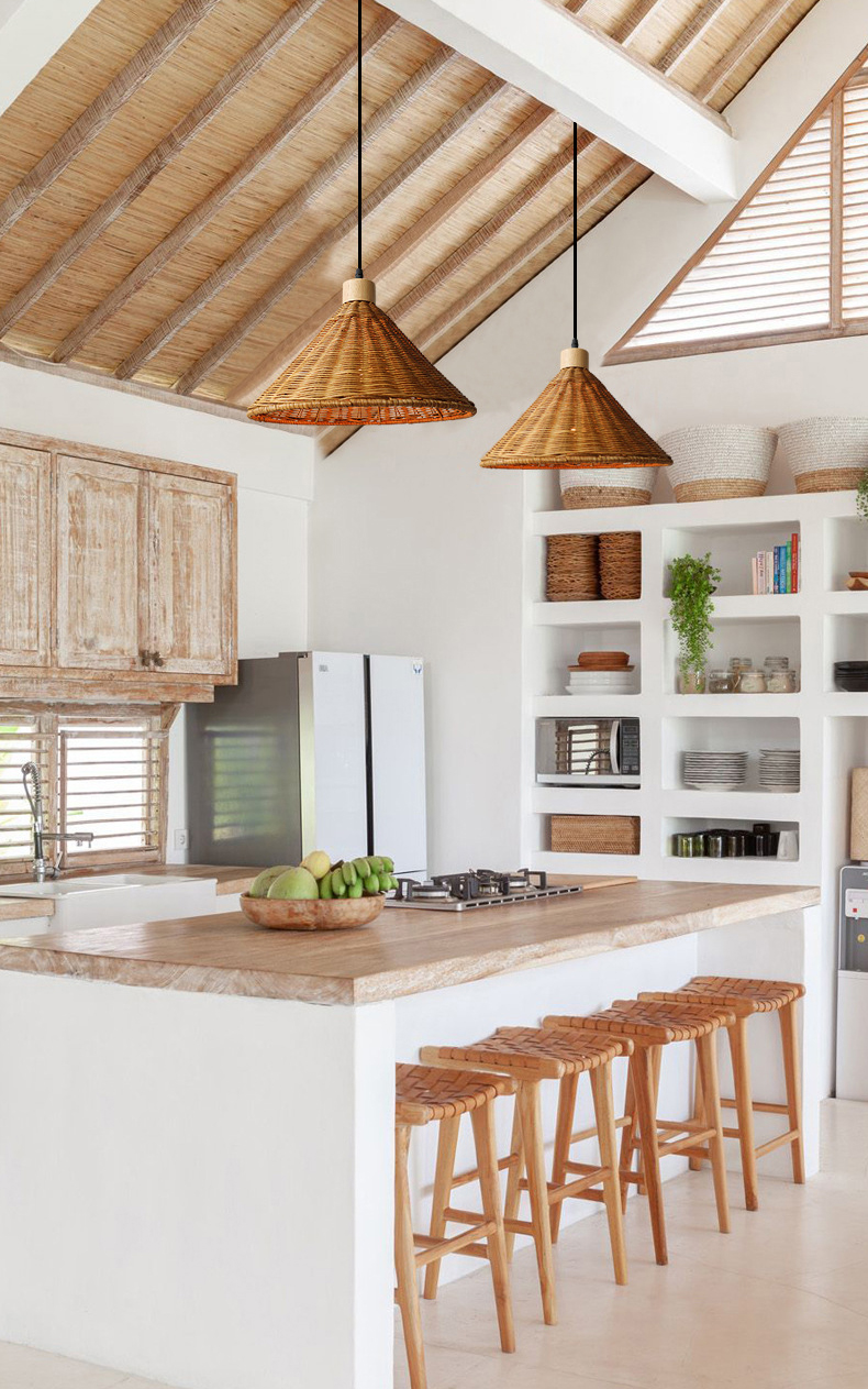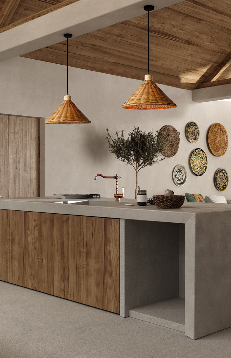 Chinese Retro Rattan Hanging Light Fixture Minimalist Scalloped Woven Rattan Pendant Light for Bedroom Kitchen