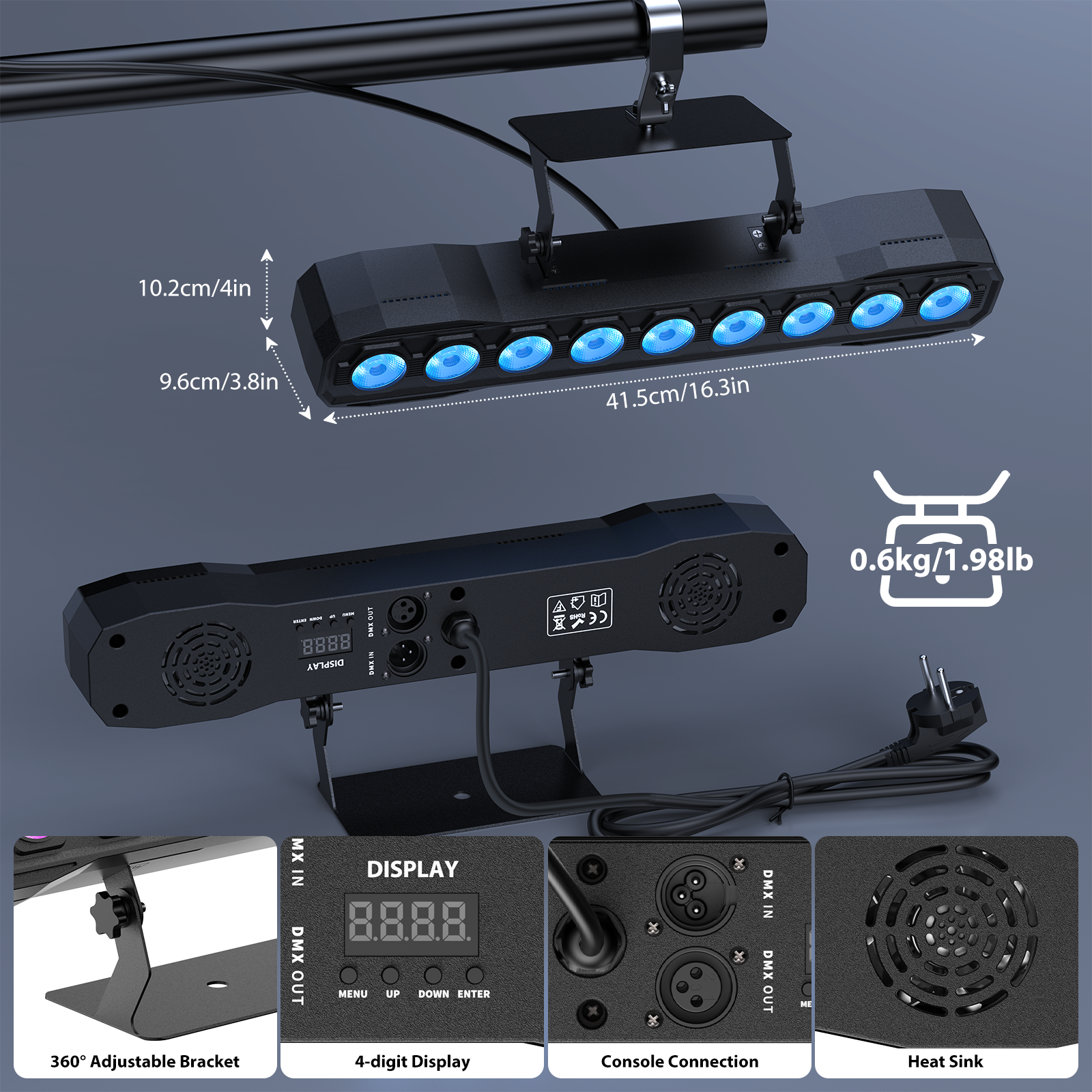60W 9LEDs RGBW KTV Lights Bar Party Wash Light Strobe Effect DJ Light for Christmas Church Night Club Disco Club Wedding Bar