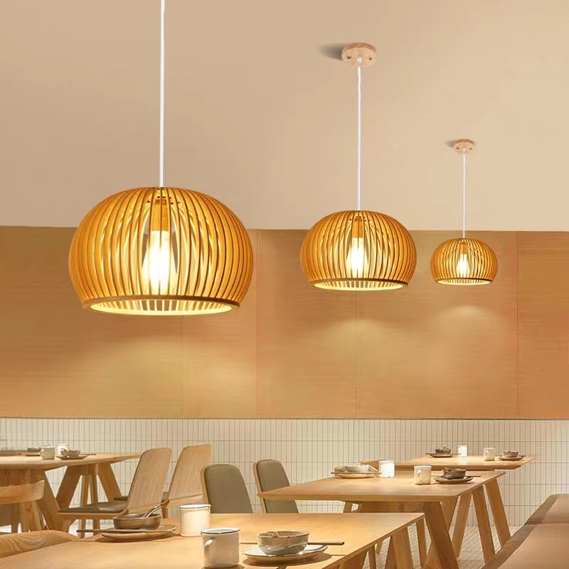 Wood Chandelier Lamp Birdcage Hotel Wooden Single Head Japanese Wooden Modern Creative Chinese Living Room Solid Restaurant LED