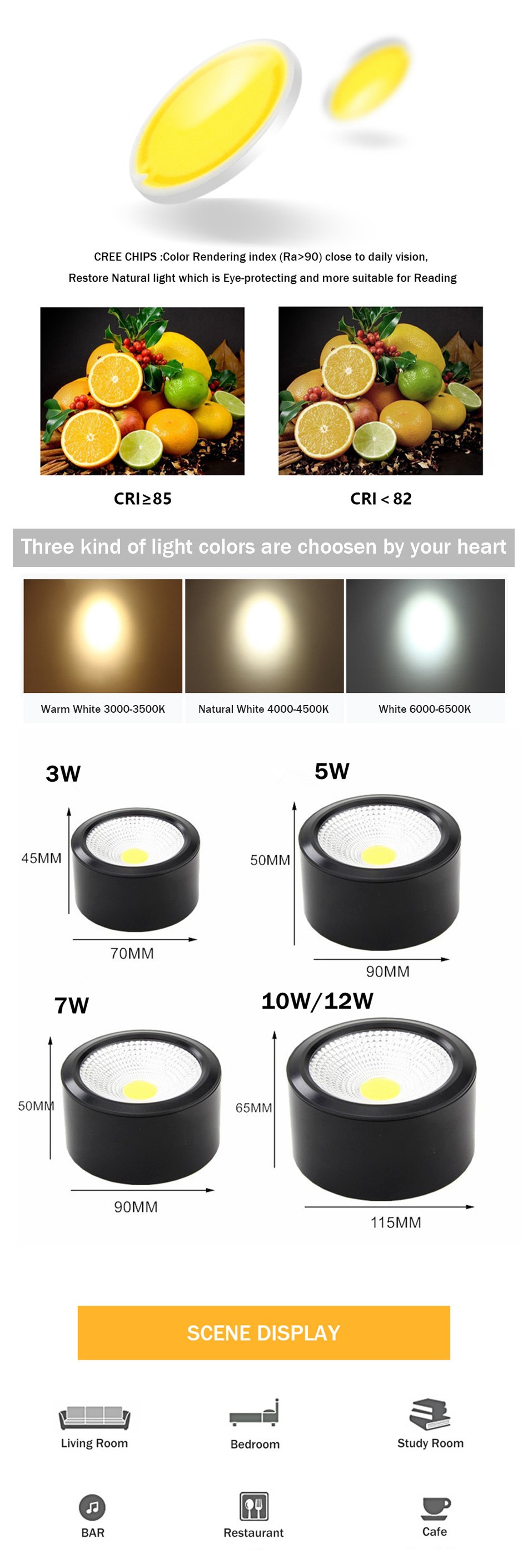 Wattage3W 5W 7W 10W