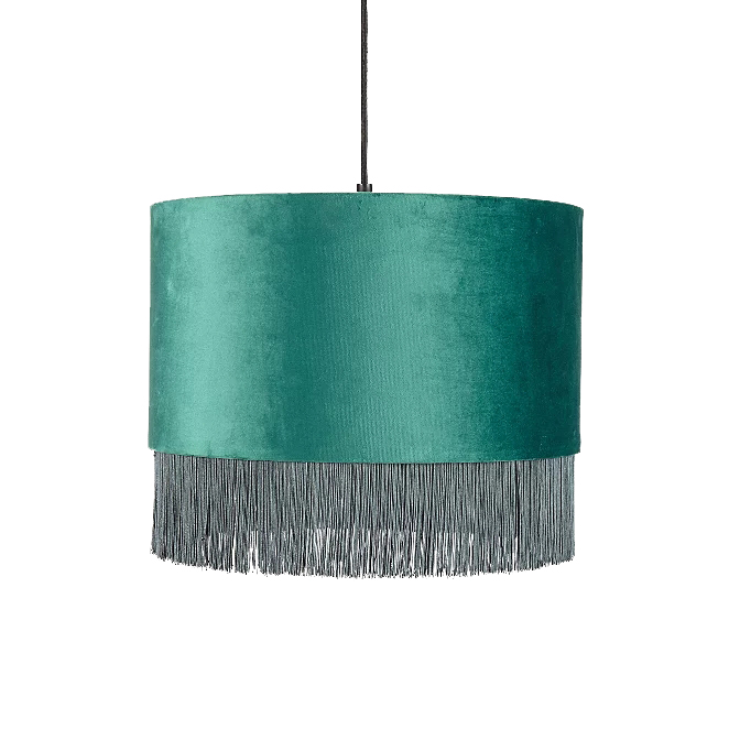 Customized Decorative Green Drum Ceiling Lampshade  ,Modern Luxury Fringe Velvet Lampshade