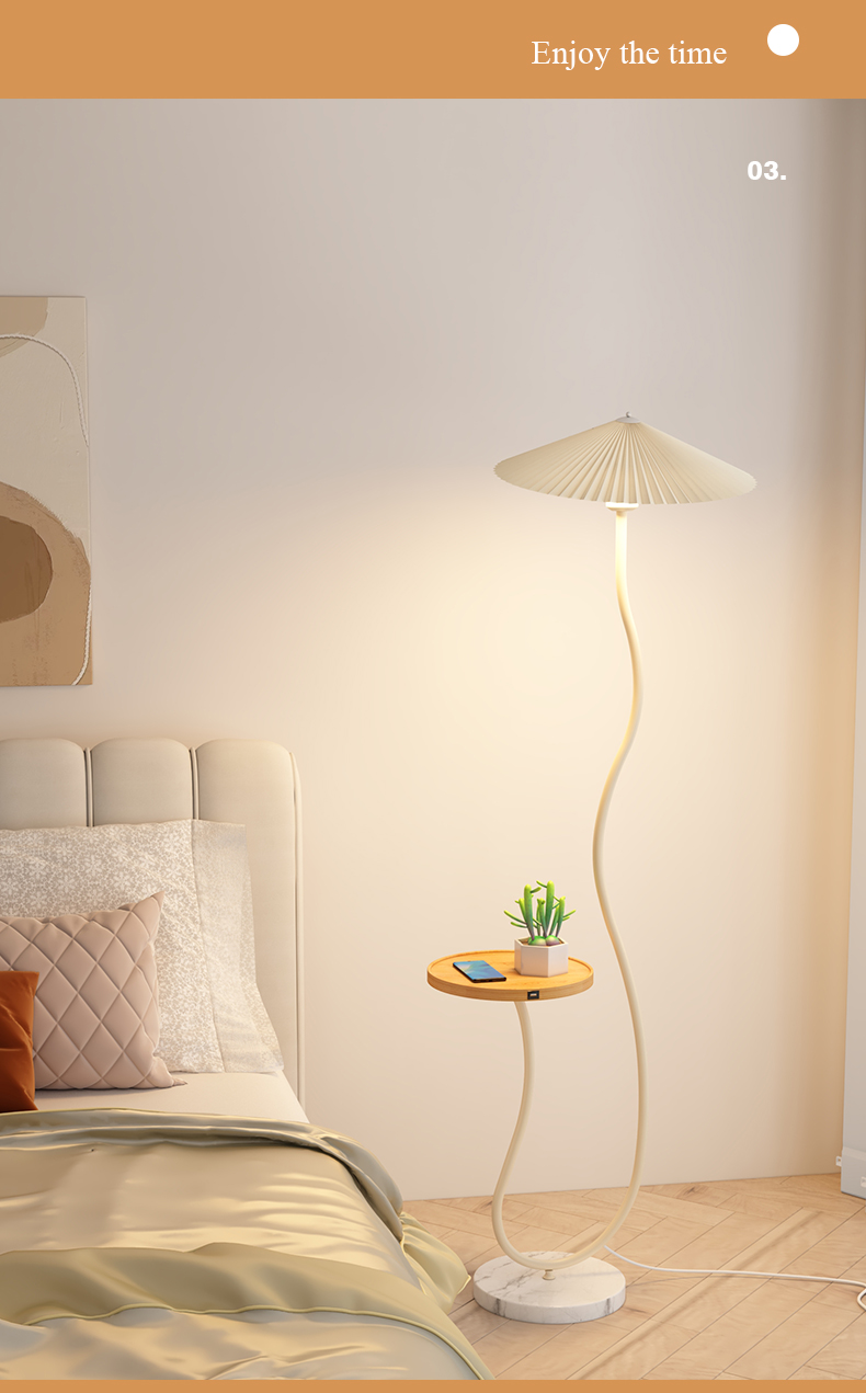 Modern Pleated Fabric Lamp Shade Decorative Standing Floor Light with Marble Table base Iron Body for Living Room Bedroom