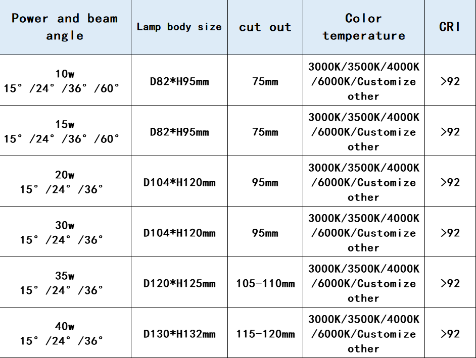 Beam angle15°/24°/36°/60°