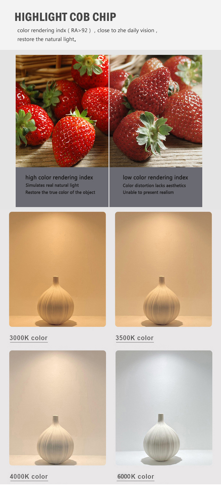 CCT:2700/3000K/3500/4000K/6000K/two-color dimming/Smart Dimming etc.
