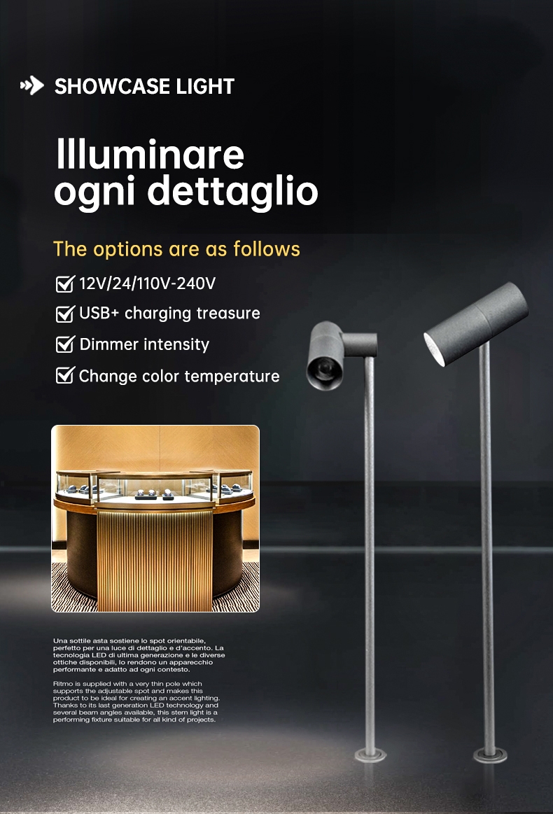 Super Thin 3W 12V 24V LED Stem Spot Light Warm White CCT Customized for Jewelry Display Case Cabinets Showcases Shops Indoors