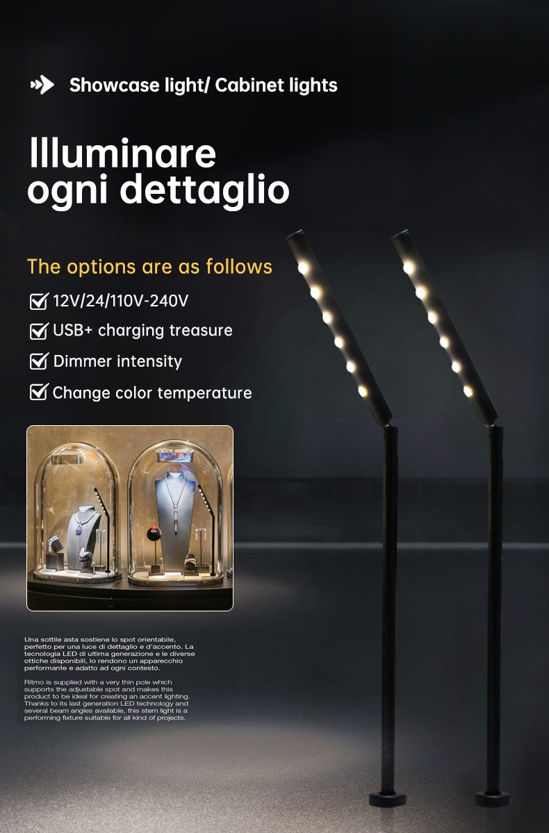 High End Jewelry Store Led Spotlight 3w Black Adjustable Display case Led Pole Light 100-240vac