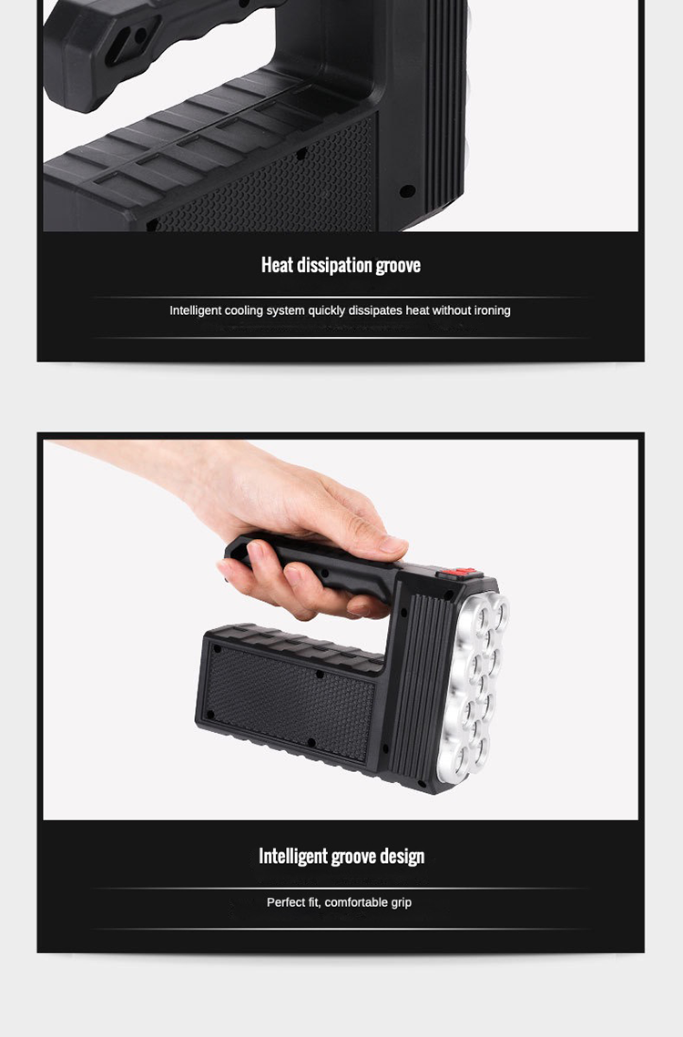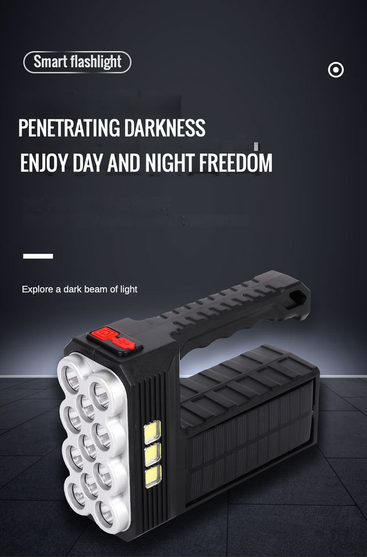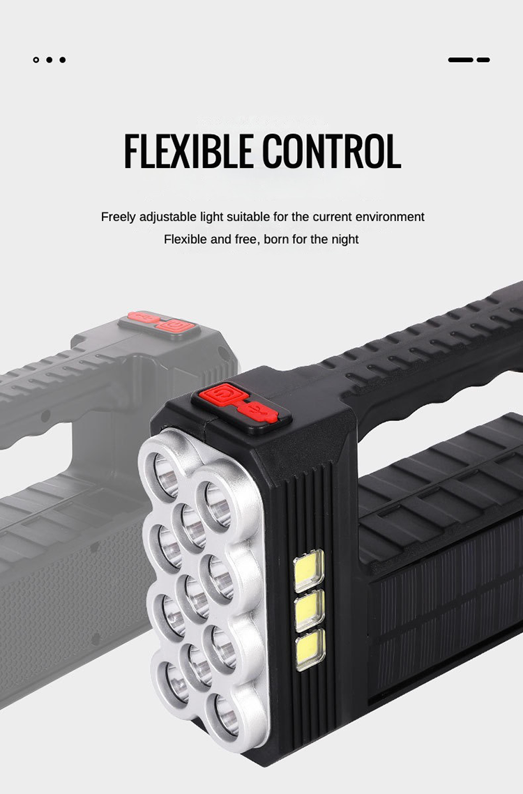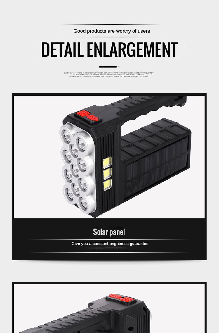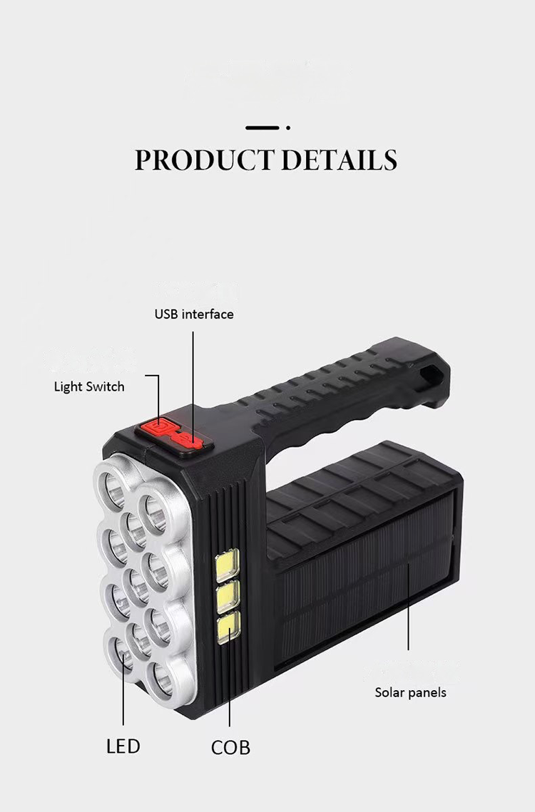 Portable Lightweight Waterproof Spotlight Rechargeable Searchlight LED Handheld Solar Flashlight with COB Sidelight