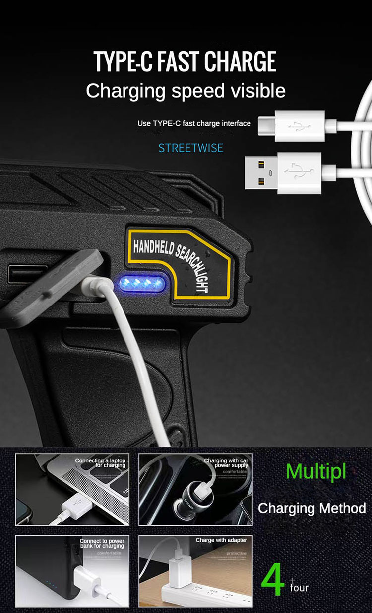High Brightness Rechargeable LED Flashlights Long-Range Waterproof USB Charged Handheld Work Lights with ABS Body