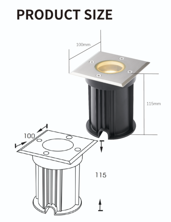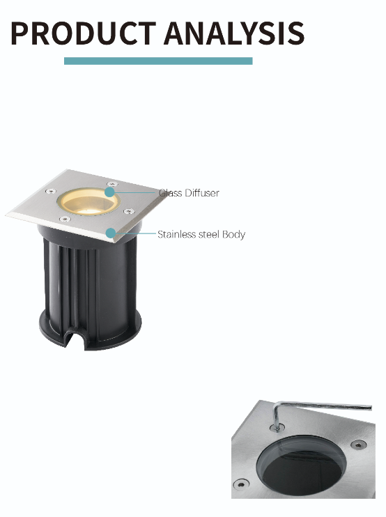 Stainless Steel Body+Glass Diffuser Material IP65 Waterproof GU10 Max 7W Buried Lamp