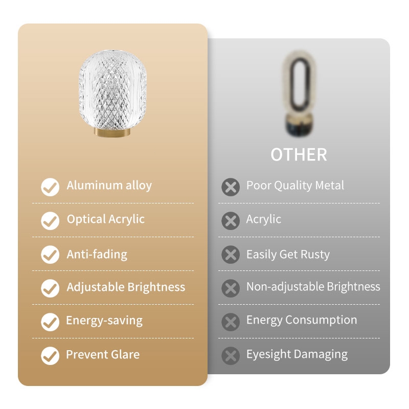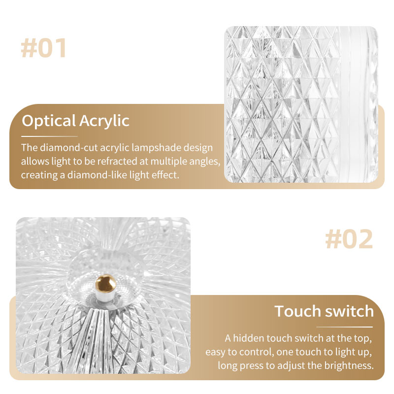 Material Aluminum +acrylic Surface finished matte , polished gold