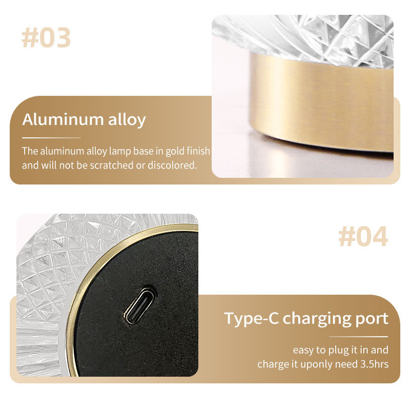 Luxury LED Warm Desk Lamp with  Restaurant Bedroom Aluminum Body Eye Protection Aisle Atmosphere Battery Powered