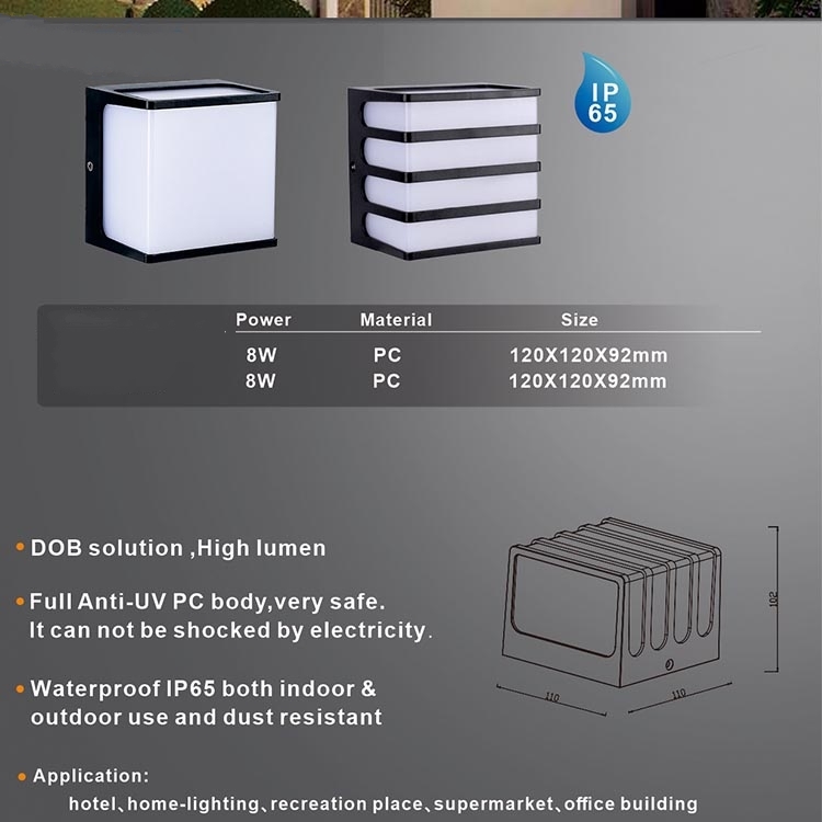 Morden Design Popular  High Quality  Out Door Garden Ip65 Waterproof PC Led 8W Wall Light Hotel