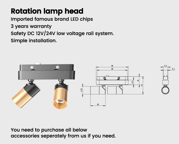 LED Track Light DC 24V 3W Diameter 15Mm Mini Track Double Heads Spotlight Light