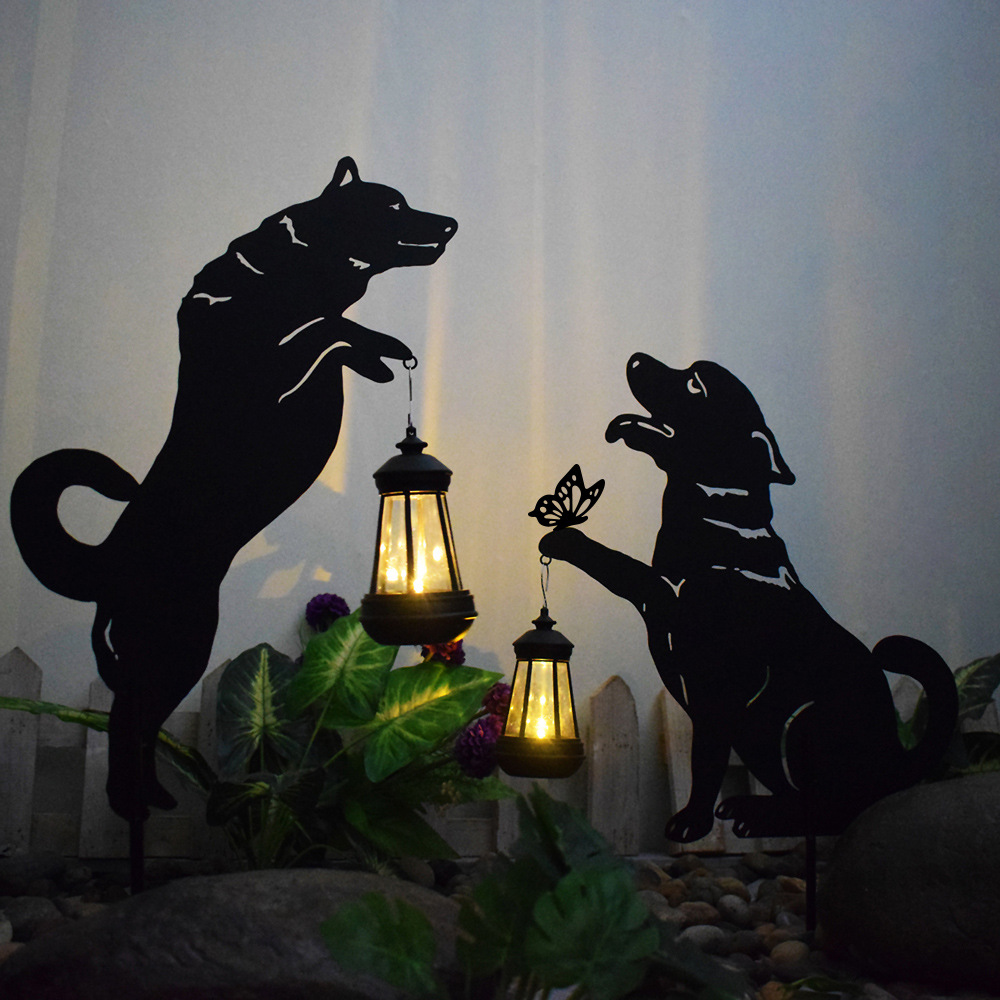 Outdoor Solar LED Light Lantern Lamp with Cat and Dog Design for Garden Decoration