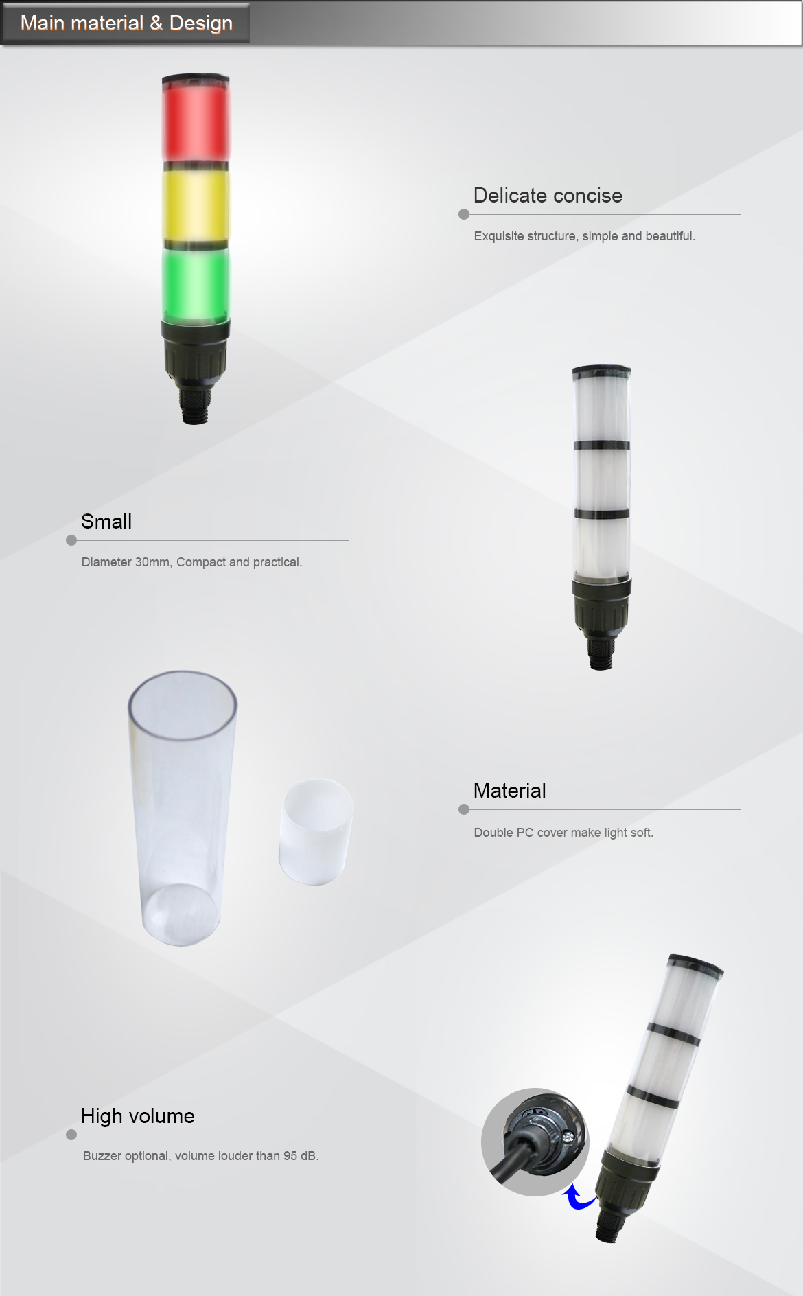 1.Diameter 30mm, compact design, 3 color with buzzer.