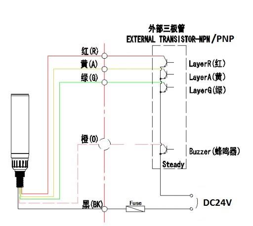| Current (DC24V) | 30mA for each color, 20mA for buzzer |