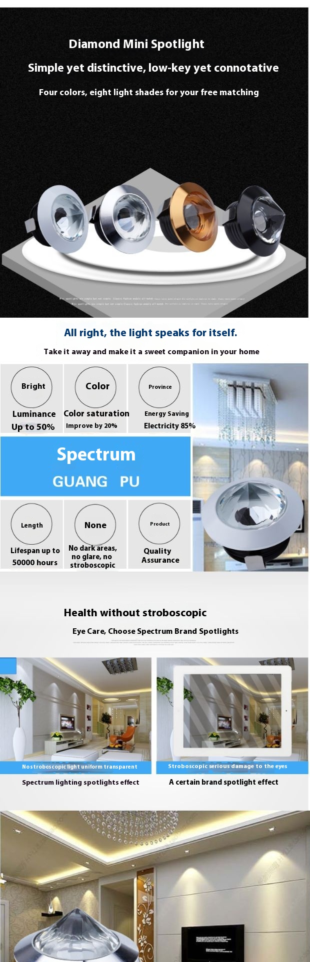 Modern 4cm Small Hole Embedded Anti-Glare Kitchen Downlight Mini 1W Diamond LED Spotlight Aluminum Cabinet GU10 Ceiling Install