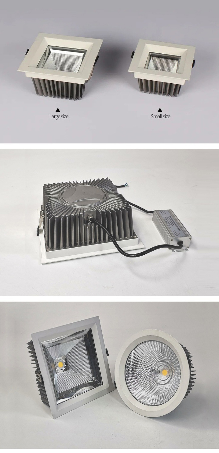Modern IP65 Waterproof Square LED Recessed Downlights High Power 10-50W Aluminum Lamp Body for Hotel Kitchens and Bathrooms